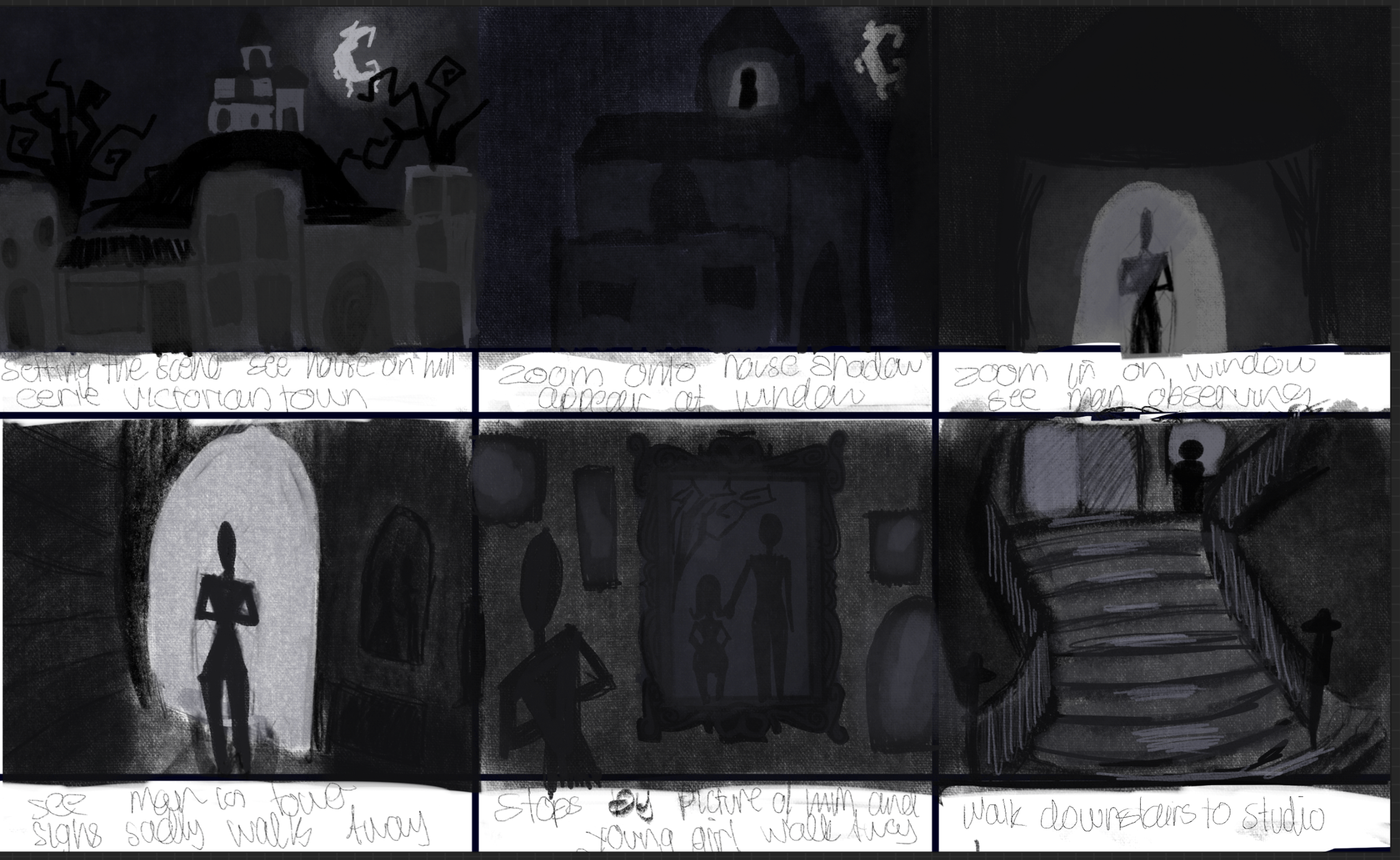 storyboarding helps me create the structure and rhythm of a story. i enjioy using both traditional and digital media to explore the narrative